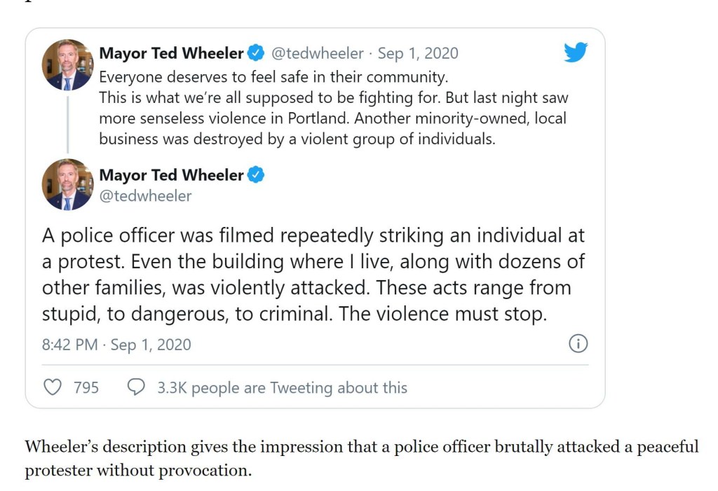 You need to study history, Mayor Wheeler. You may think your criticism of cops is cute, and will win you points with the people you have allowed to control your downtown for months now. But study what happens in almost every Marxist revolution throughout history. Once they take over, the Marxists eliminate all of the old regime. You were elected in a democratic process, within a constitutional republic. You are the enemy to them. You are just a “useful” enemy – for the moment.